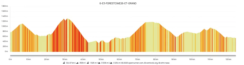 Le défi majeur se présente au kilomètre 50 avec la montée du col de Cuvéry : une ascension exigeante qui, par temps clair, offre une vue magistrale sur le massif du Mont-Blanc.